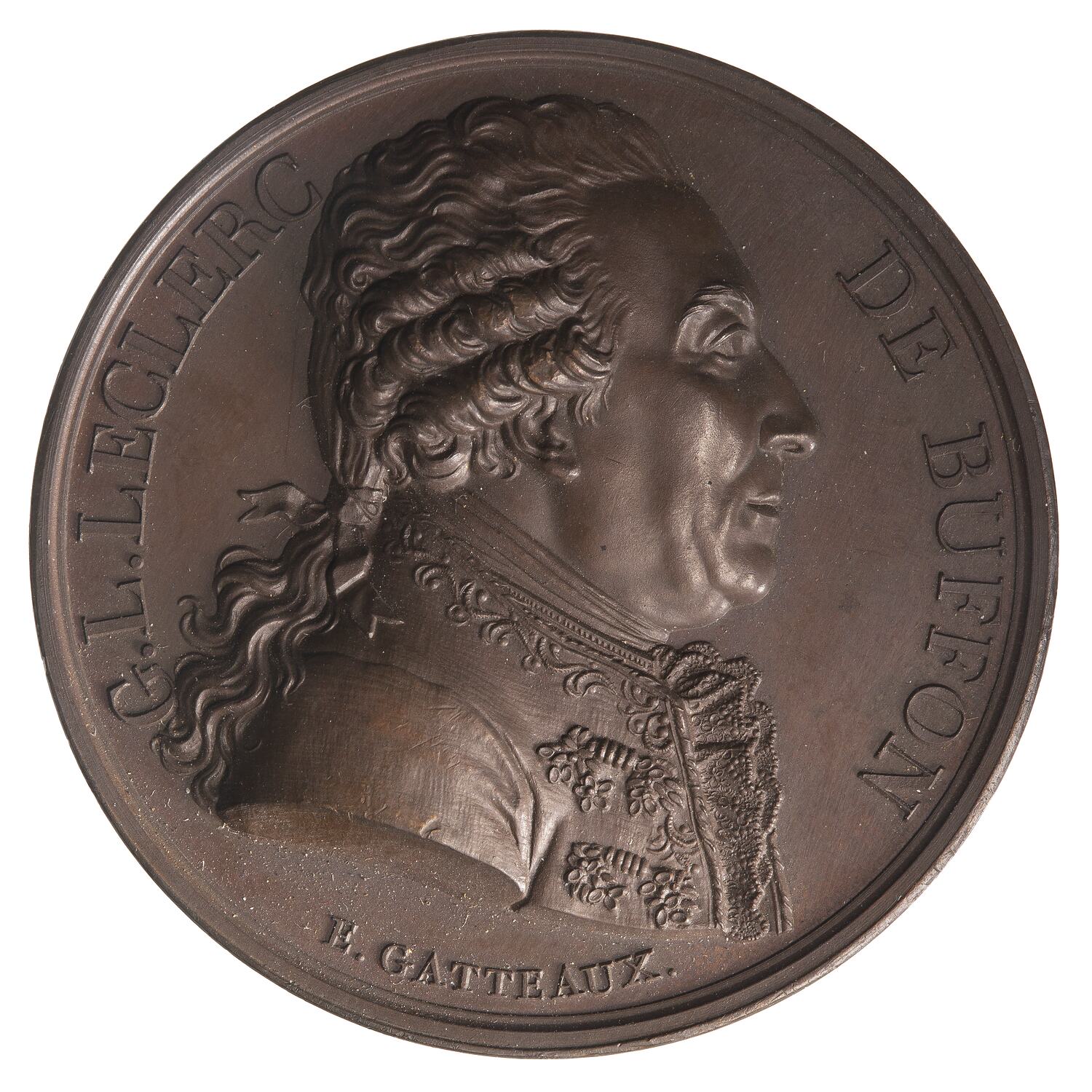 Bust facing right; around, G.L. LECLERC DE BUFFON; below in smaller lettering the artist's name, E. GATTEAUX