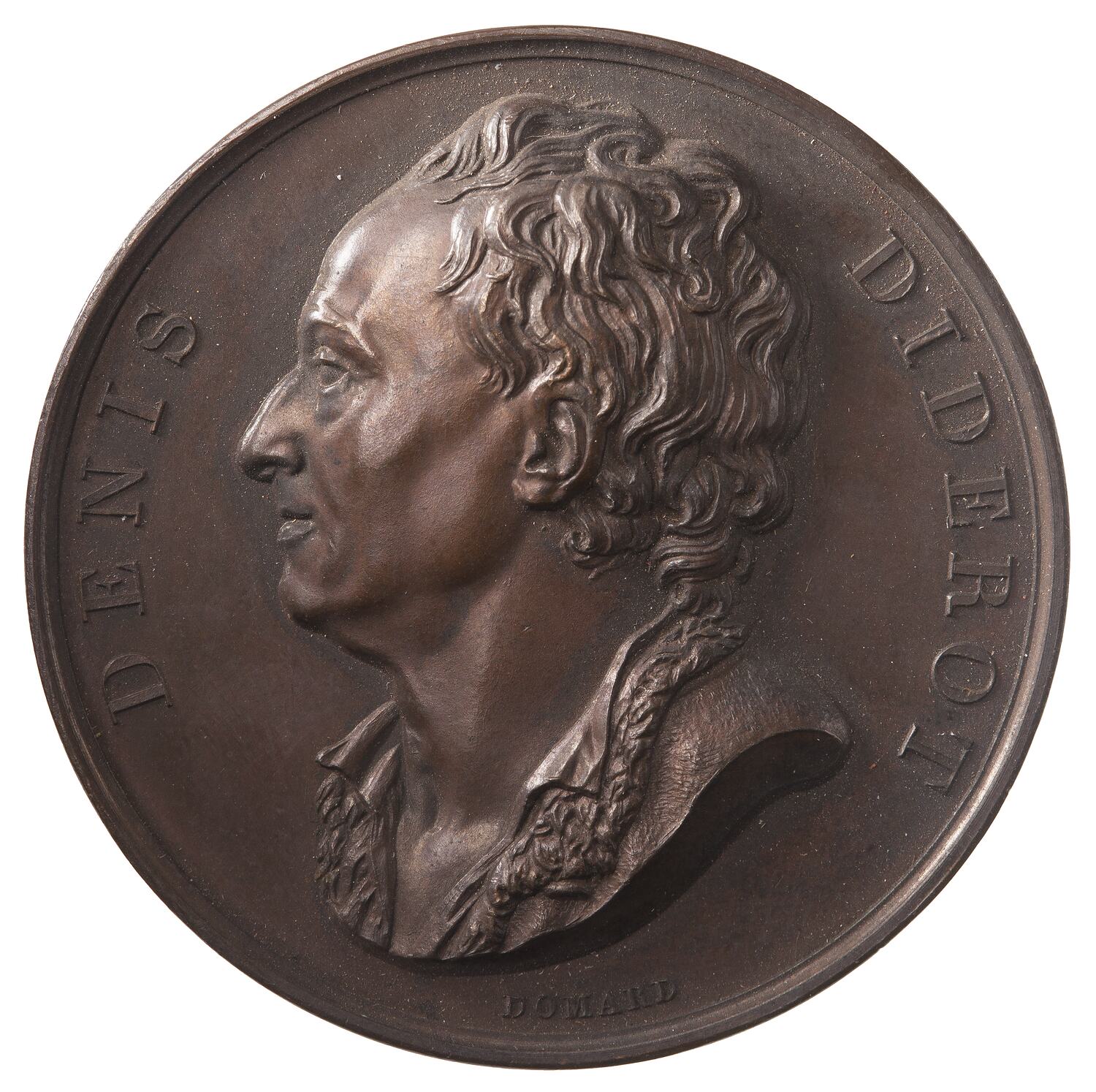 Portrait medal of Denis Diderot (1713-1784) by Domard. One of the Galerie Metallique des Grand Hommes Francais series. Minted in Paris, 1817.