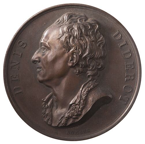 Bust facing left; around, DENIS DIDEROT; below in smaller lettering the artist's name, DOMARD