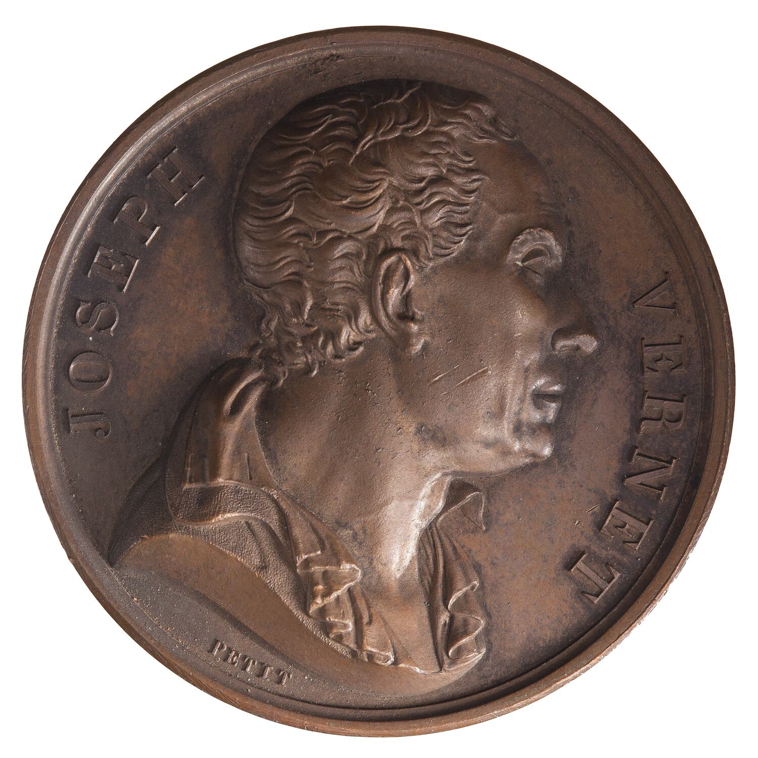 Bust facing right; around, JOSEPH VERNET; below in smaller lettering the artist's name, PETIT