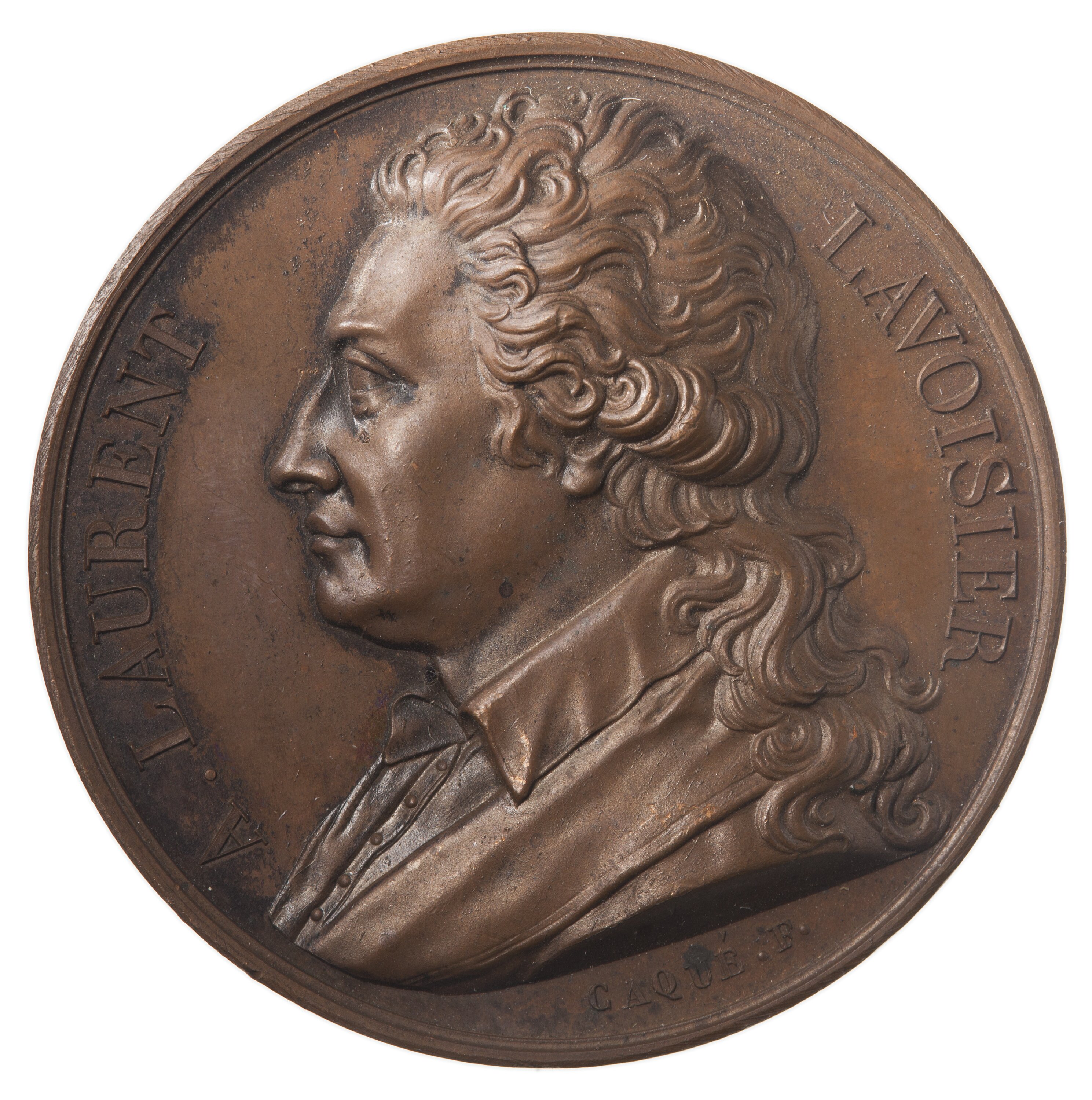 Portrait medal of Antoine Laurent Lavoisier (1743-1794) by Caque. One of the Galerie Metallique des Grand Hommes Francais series. Minted in Paris, 1821.