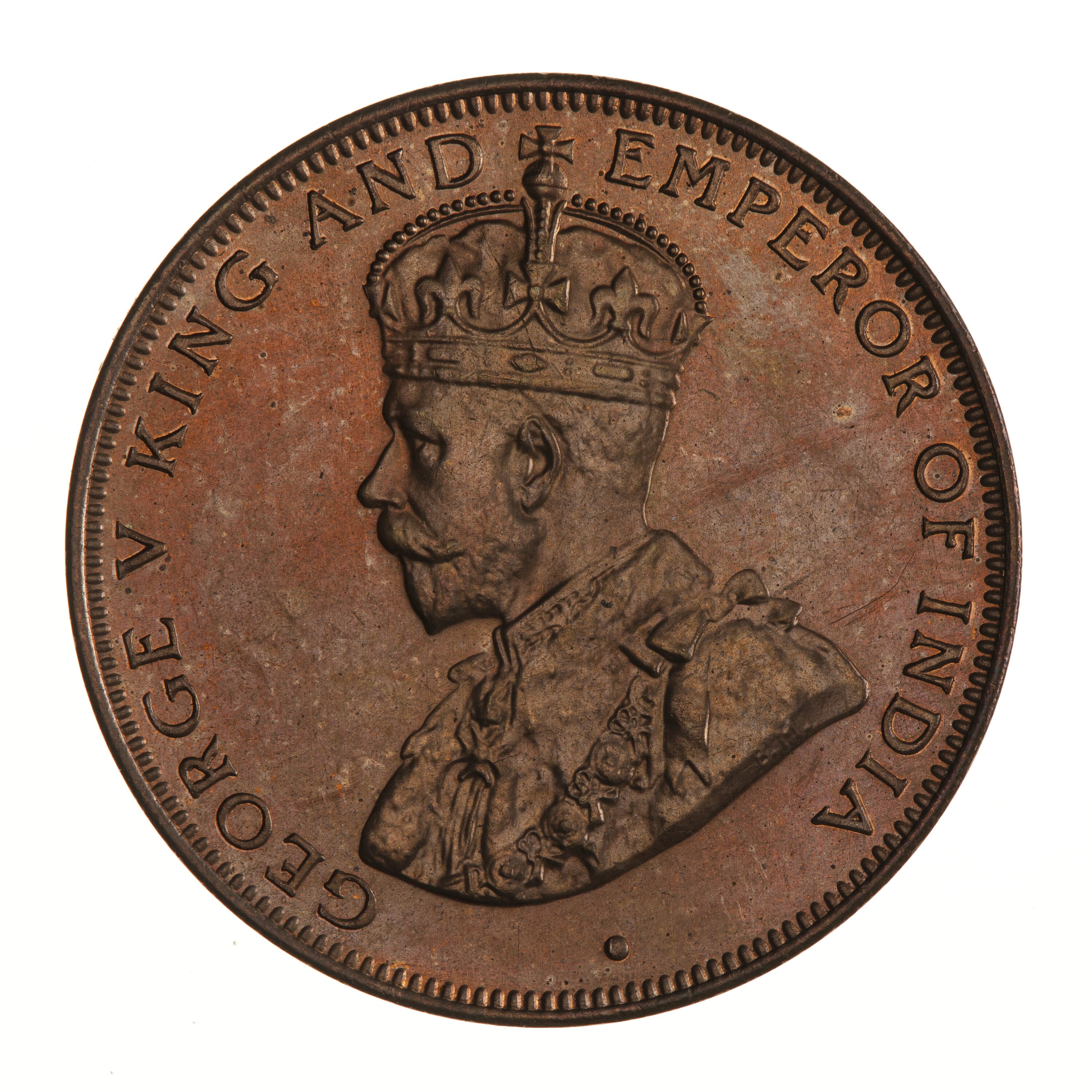 Crowned bust of George V facing right; around, GEORGE V KING AND EMPEROR OF INDIA