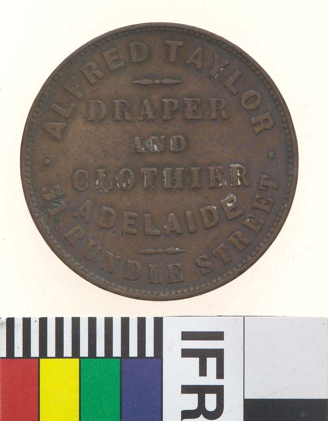Pbverse: ALFRED TAYLOR DRAPER AND CLOTHIER ADELAIDE 31 RUNDLE STREET Reverse: AUSTRALIA
