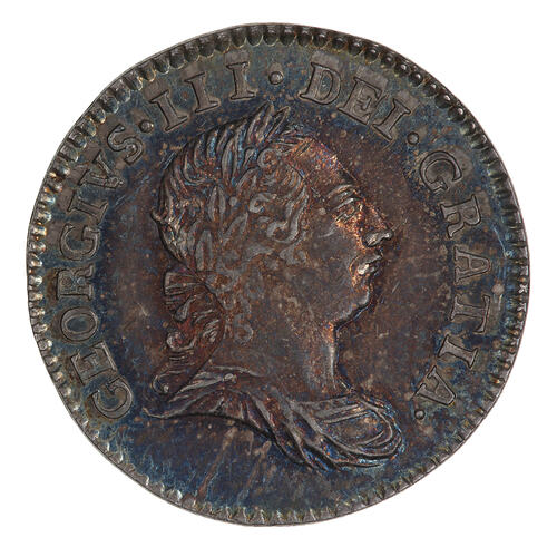 Laureate and draped bust of the King facing right; around, GEORGIVS III DEI GRATIA