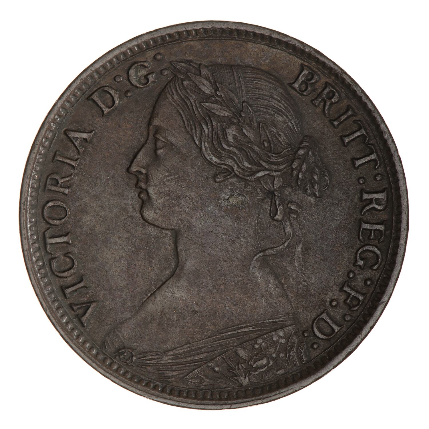 Laureate bust of the Queen facing left; around, VICTORIA D:G: BRIT: REG: F:D: