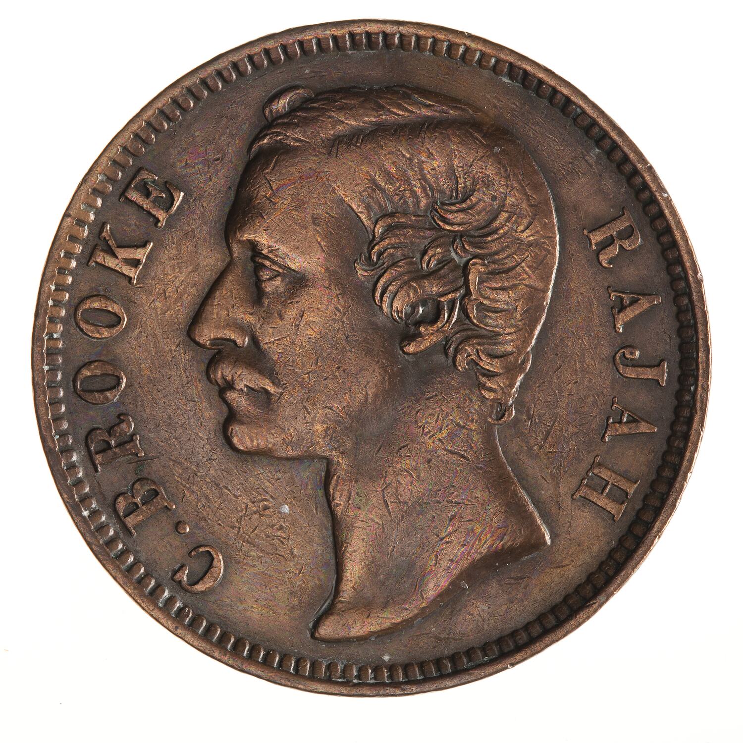 Sir Charles Johnson Brooke, depicted on the obverse of this coin, became Rajah of Sarawak after the death of James Brooke in 1868.