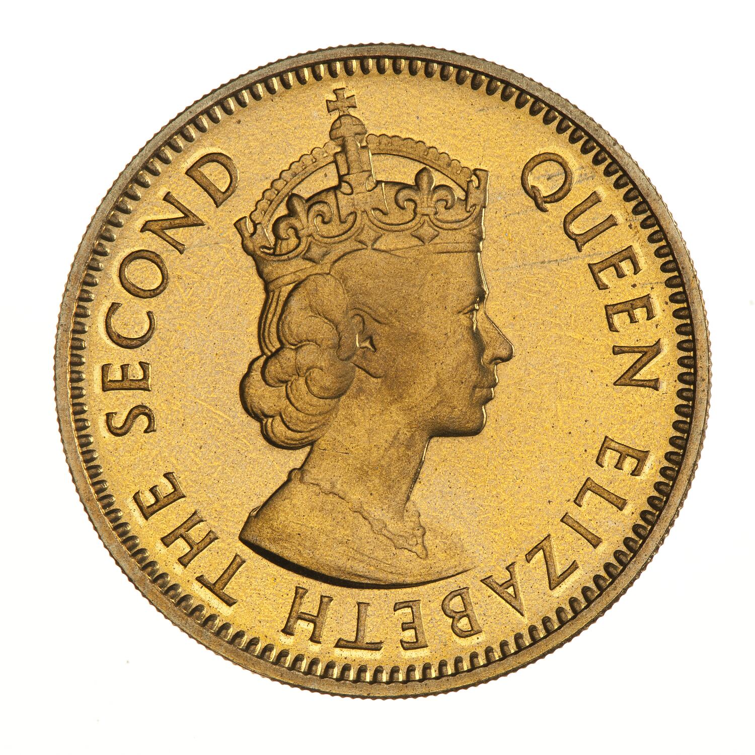 Crowned bust of the Queen facing right; around, QUEEN ELIZABETH THE SECOND, artist's initials, CT, incuse on bust truncation