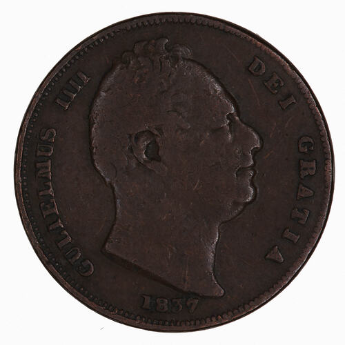 Bare head of the King facing right; around, GULIELMUS IIII DEI GRATIA; below, 1837