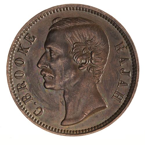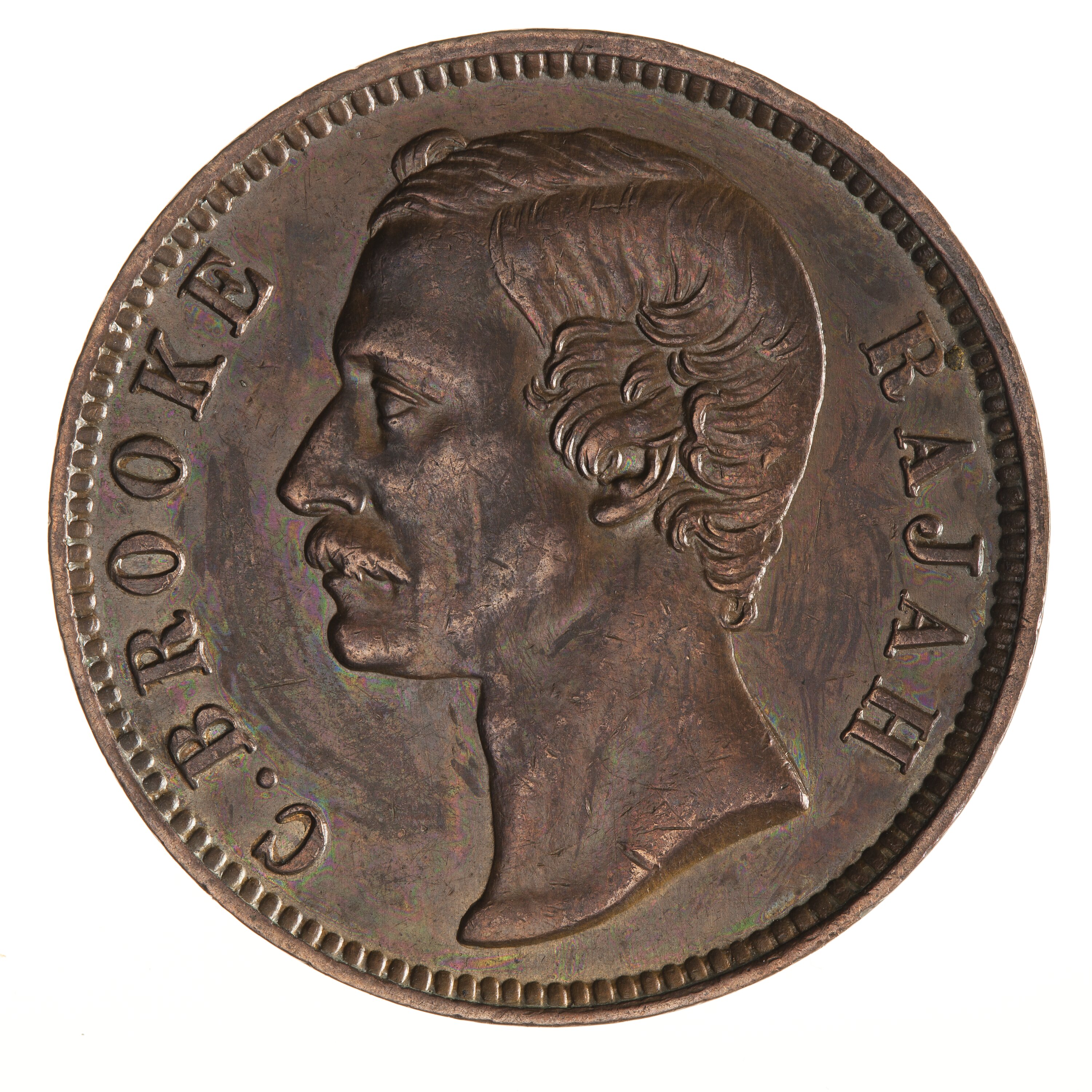 Sir Charles Johnson Brooke, depicted on the obverse of this coin, became Rajah of Sarawak after the death of James Brooke in 1868.