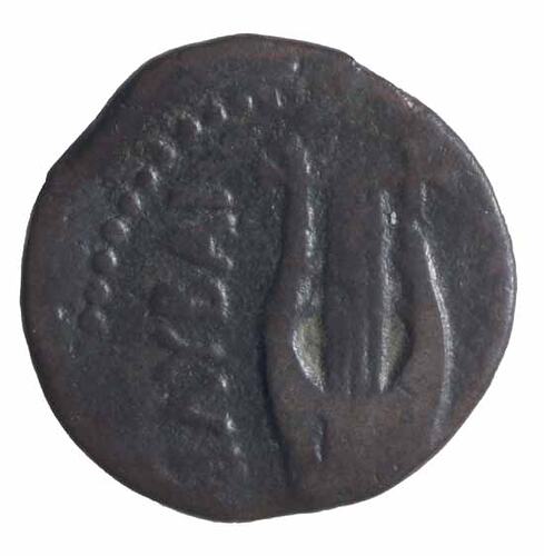 Lyre with the Greek legend on left side {LILYBAI} (the rest of the legend - ITAN, is mostly off the flan on the right side)