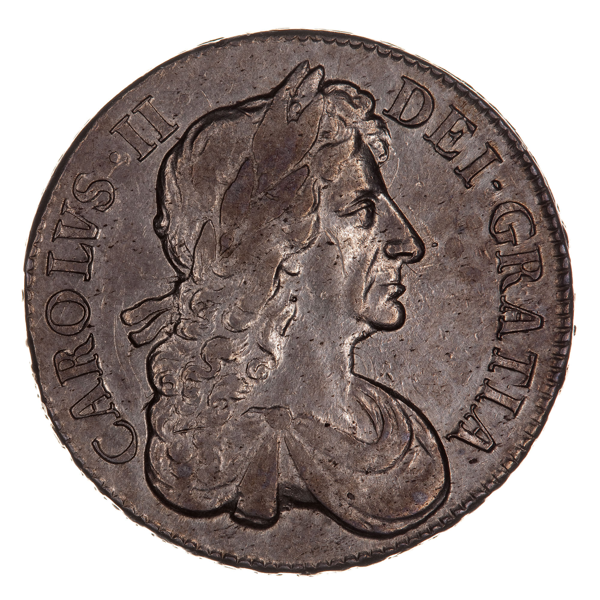 The crown is a five shilling coin. The coins were produced on the new mill and screw method under the direction of Peter Blondeau.