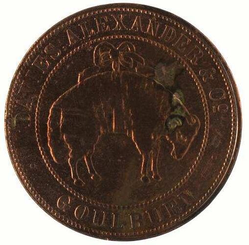 Obverse: DAVIES, ALEXANDER & Co. . GOULBURN . Reverse: AUSTRALIAN STORE GOULBURN ESTABLISHED 1837 ADVANCE AUSTRALIA