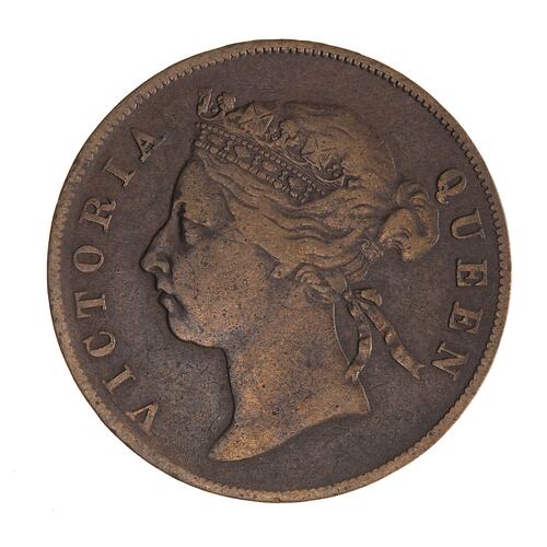1 Cent, Issued by Straits Settlements, Malaysia, Penang, Malacca, Singapore, 1884