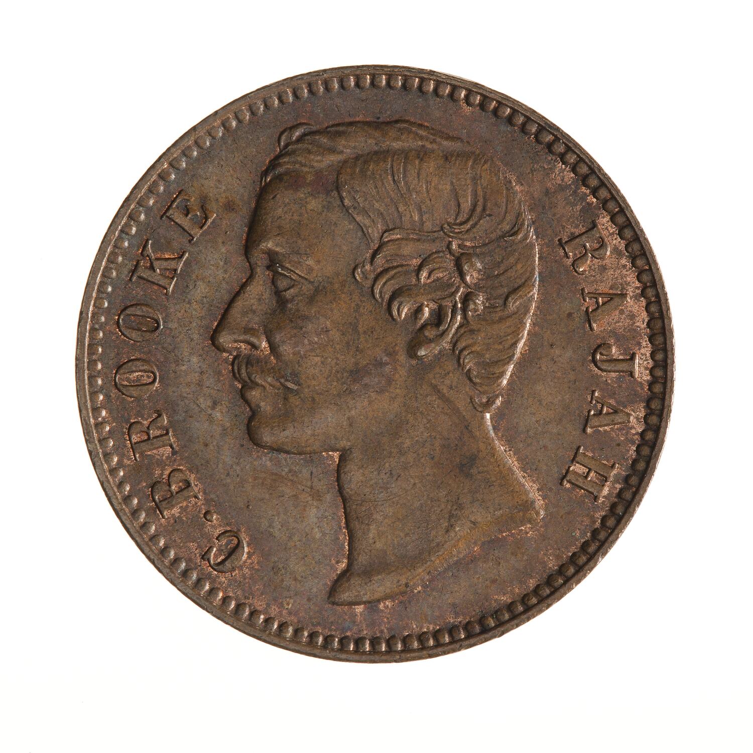 Sir Charles Johnson Brooke, depicted on the obverse of this coin, became Rajah of Sarawak after the death of James Brooke in 1868.