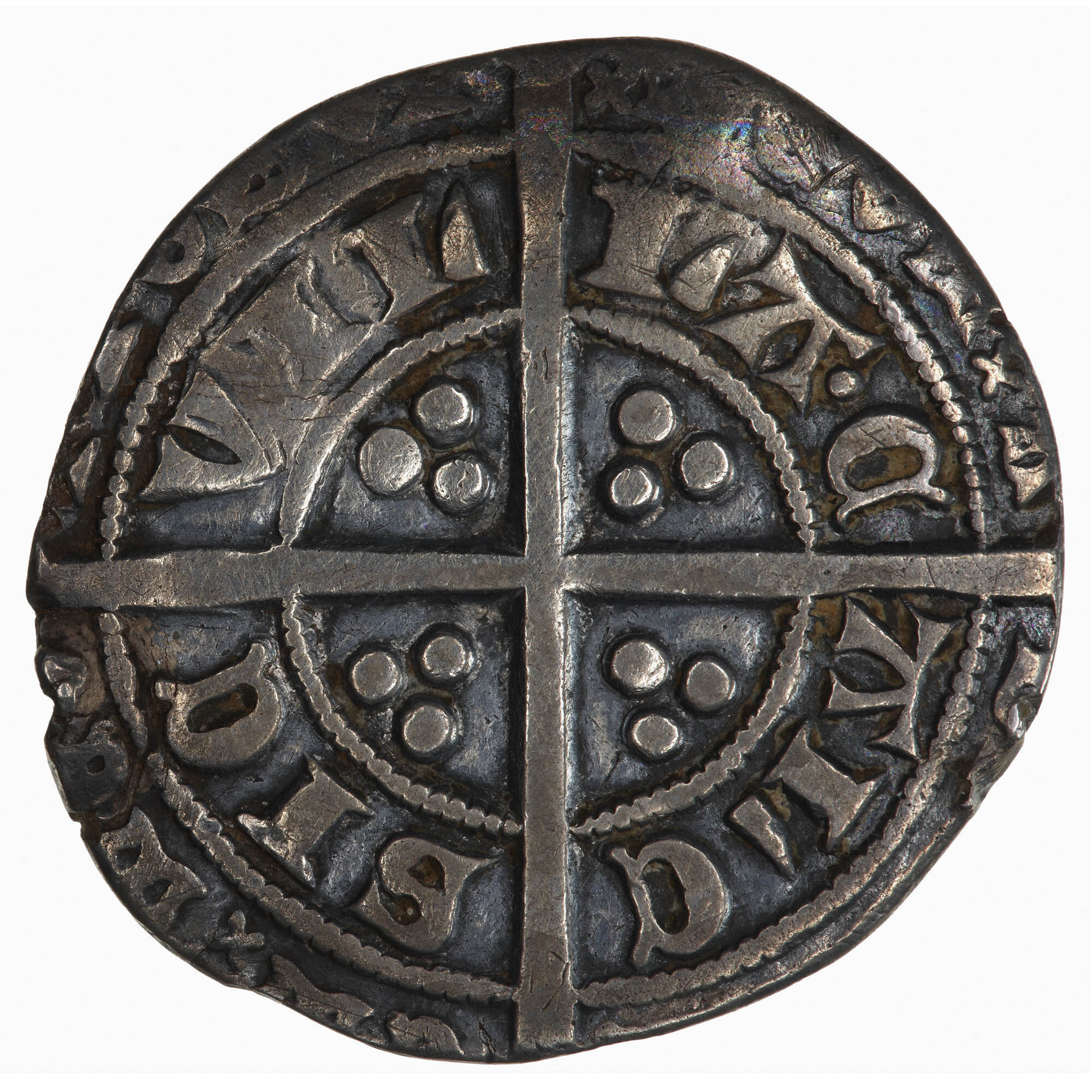 A crowned bust of the King facing, annulet on brest; around the base of the letters, EDWA the rest removed by clipping