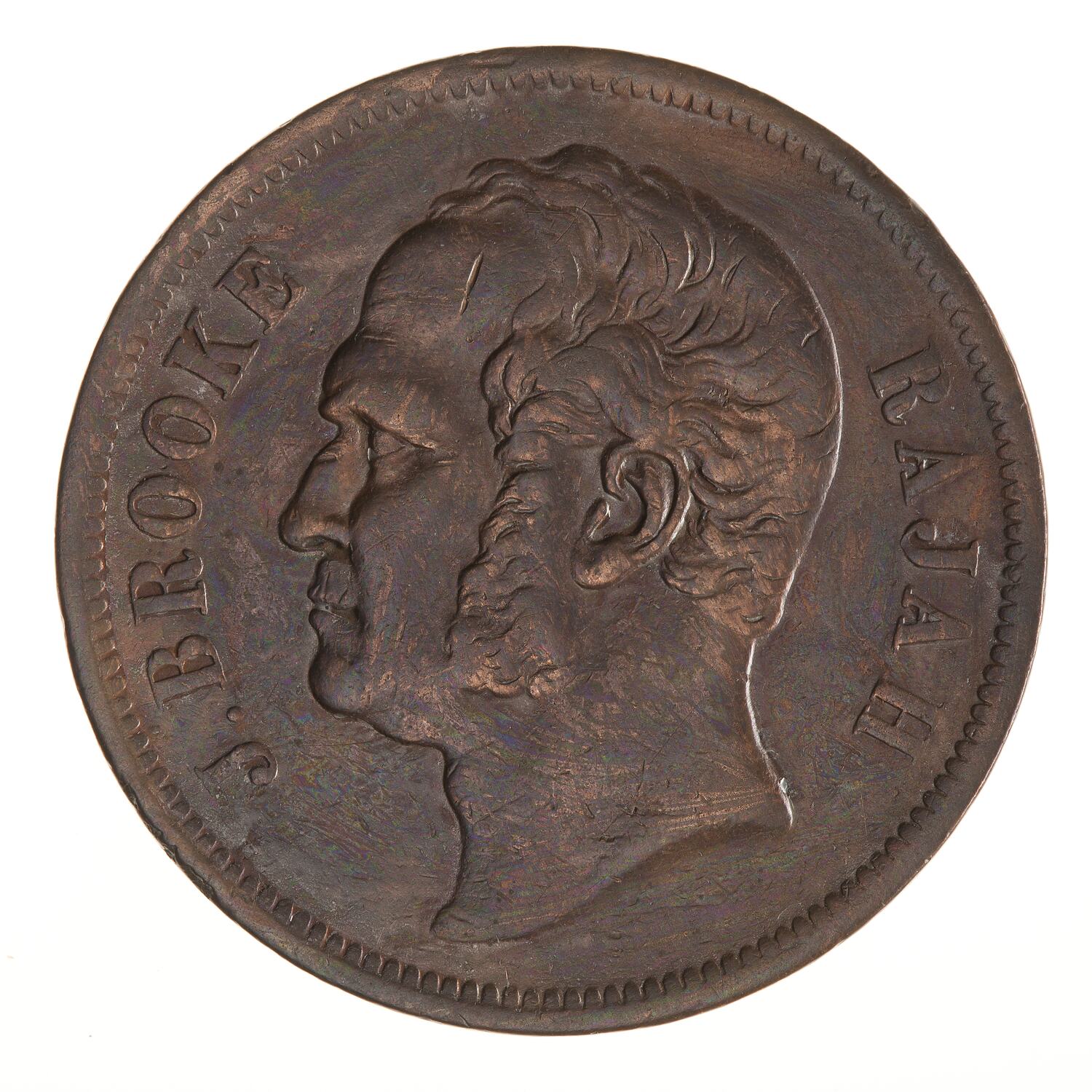 Head of James Brooke facing left; around, J. BROOKE RAJAH