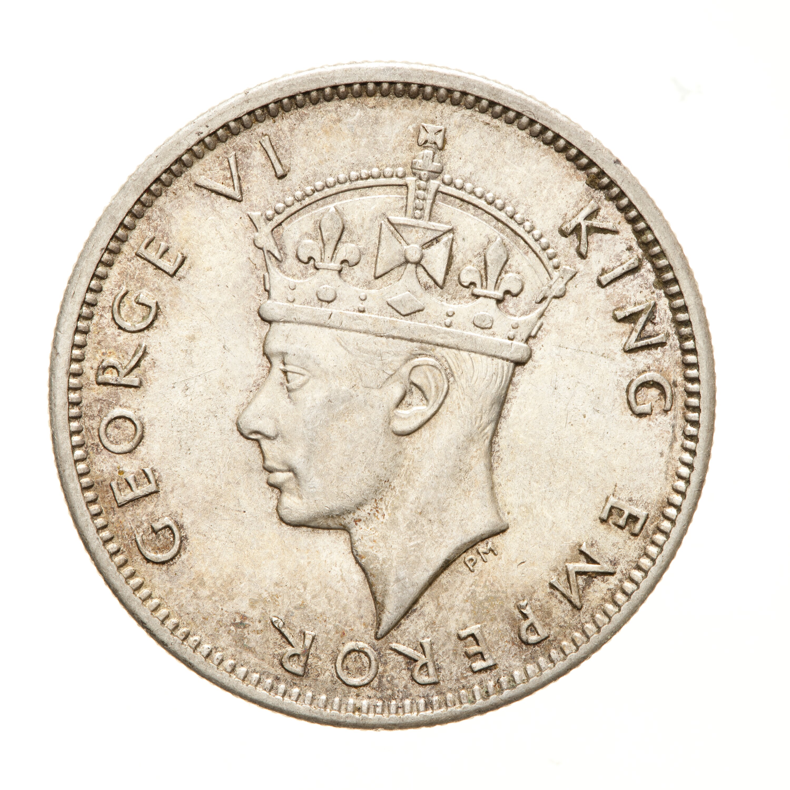 Crowned head of the King facing left; around, GEORGE VI KING EMPEROR