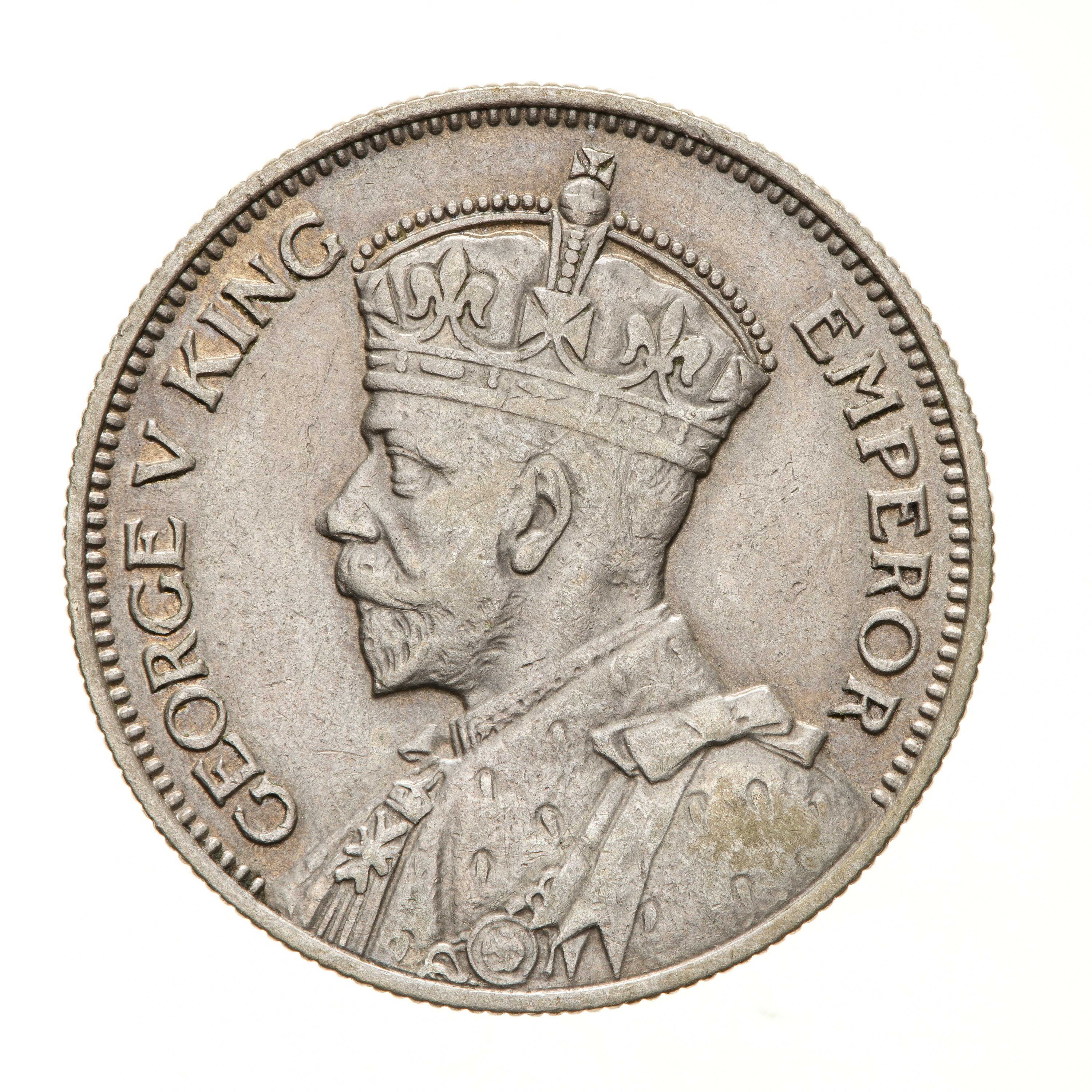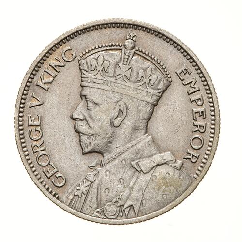 Crowned and draped bust of the King facing left; around, GEORGE V KING EMPEROR