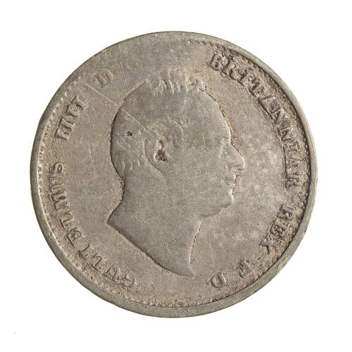 Head of the King facing right; around, GULIELMUS IIII D: G: BRITANNIAR: REX F:D: