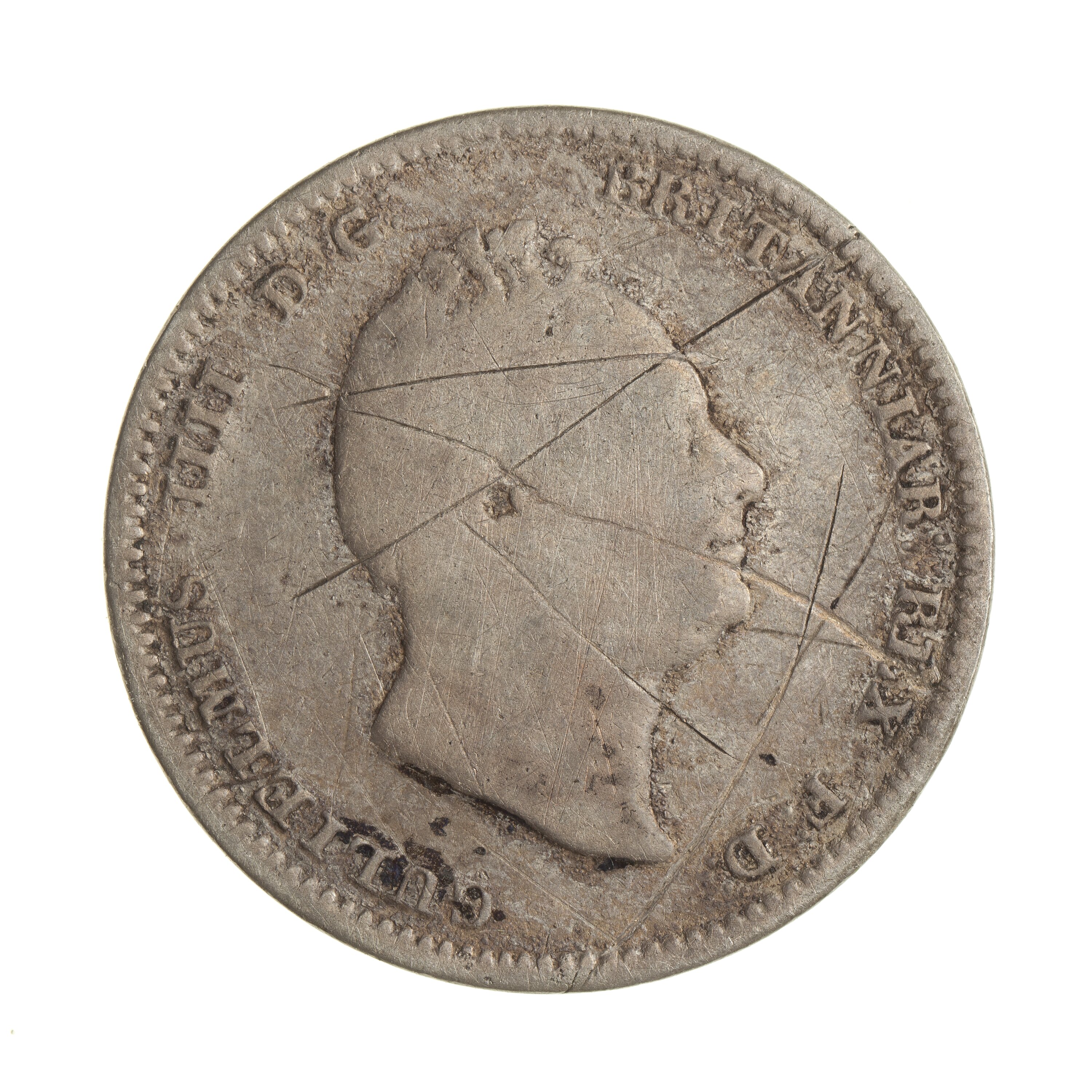 Head of the King facing right; around, GULIELMUS IIII D: G: BRITANNIAR: REX F:D: