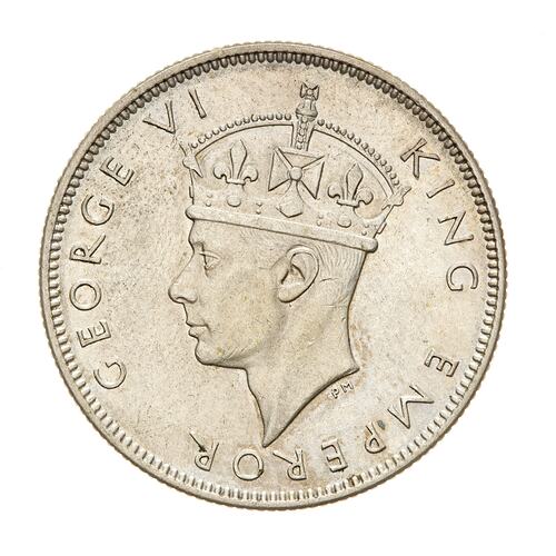 Crowned head of the King facing left; around, GEORGE VI KING EMPEROR
