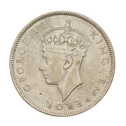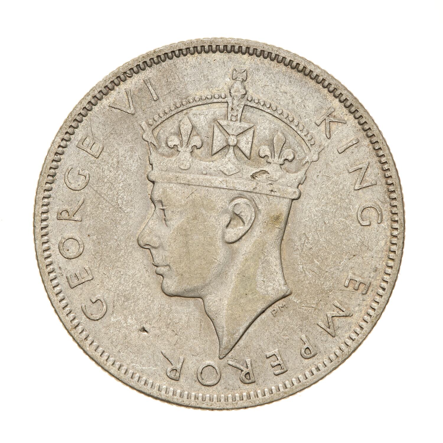 Crowned head of the King facing left; around, GEORGE VI KING EMPEROR