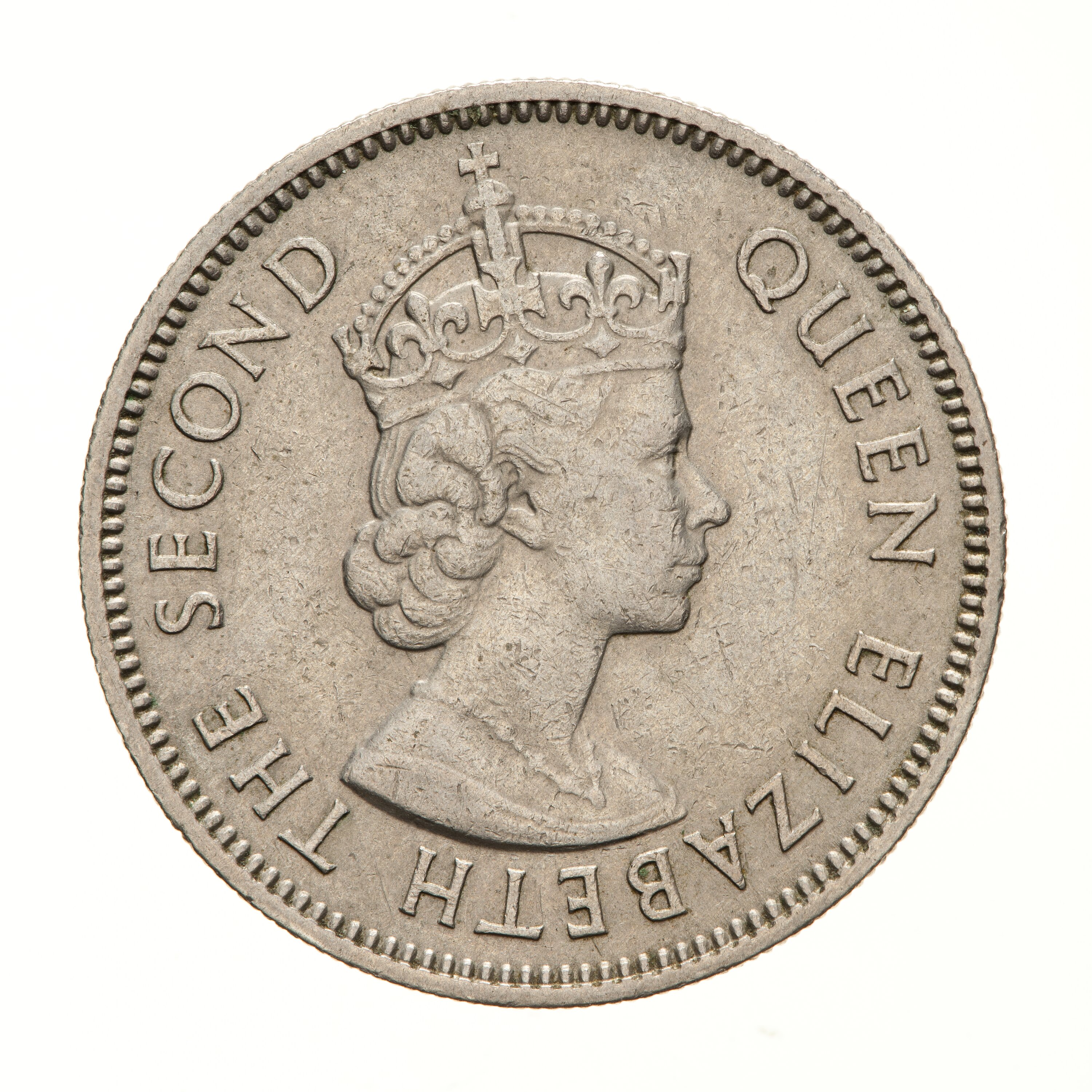 Crowned bust of the Queen facing right; around, QUEEN ELIZABETH THE SECOND