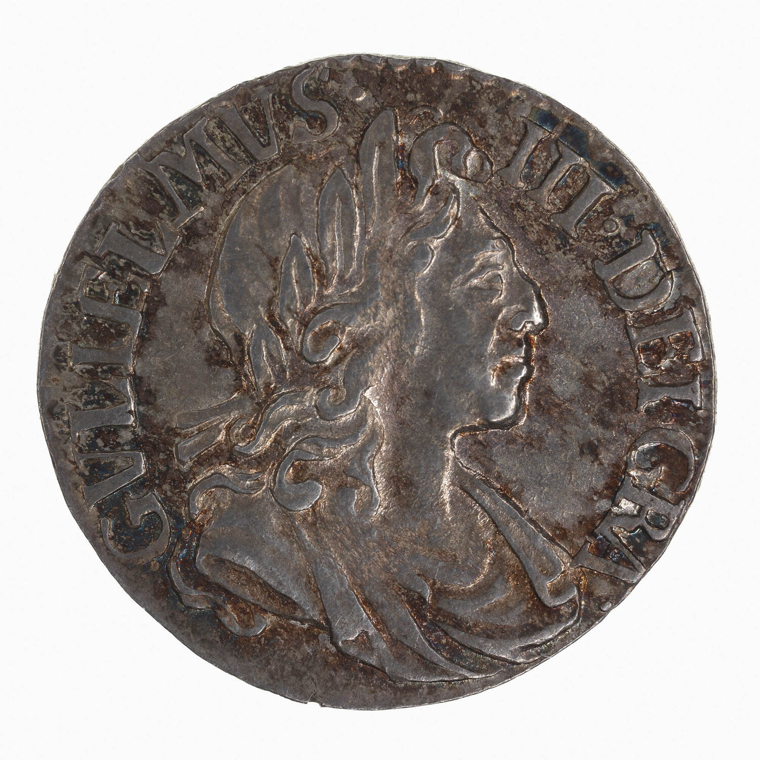 Laureate bust of the King facing right; around, GVLIELMVS III DEI GRA