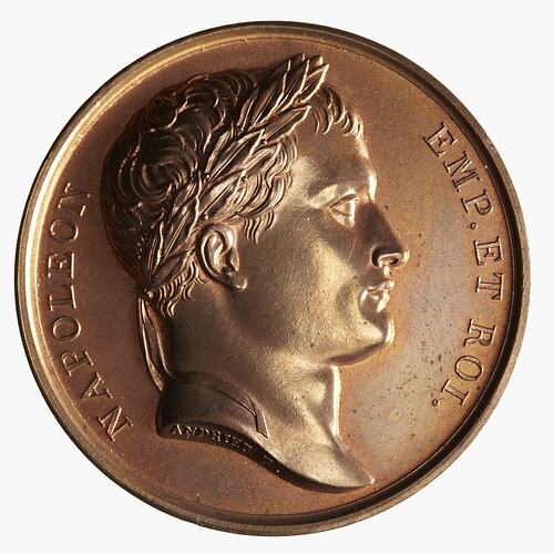 Laureate head of Napoleon facing right, around, NAPOLEON EMPEREUR; on neck truncation in small lettering, ANDRIEU F.