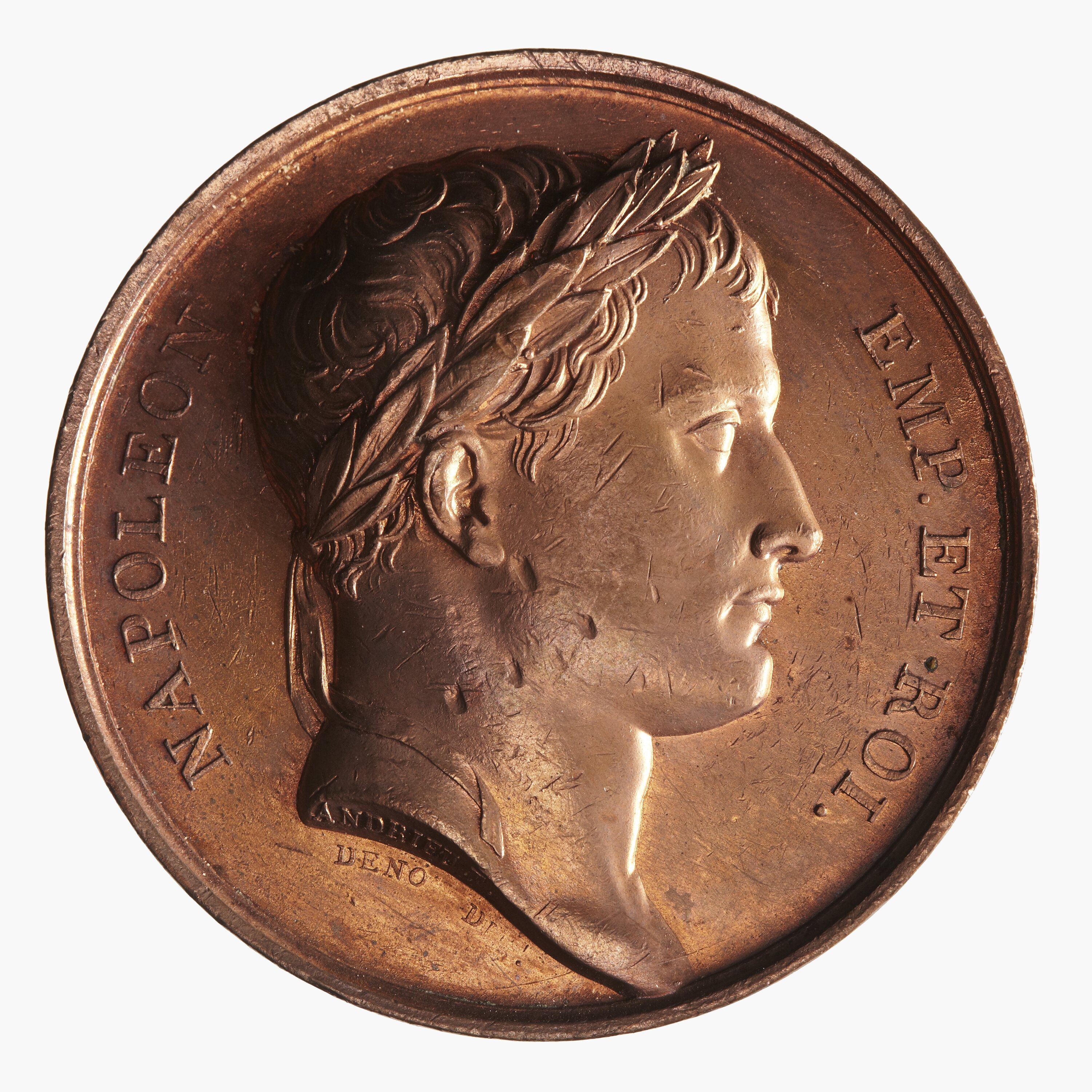 Laureate head of Napoleon facing right; around, NAPOLEON EMP ET ROI; on neck truncation in small lettering, ANDRIEU F.; below (not fully struck up), DENON DIR.