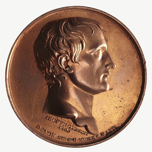 Head on Bonaparte right, below in small letters, JEUFFROY. FECIT / 1803 / DENON DIR. C. D. MUSEE. C.D. ARTS