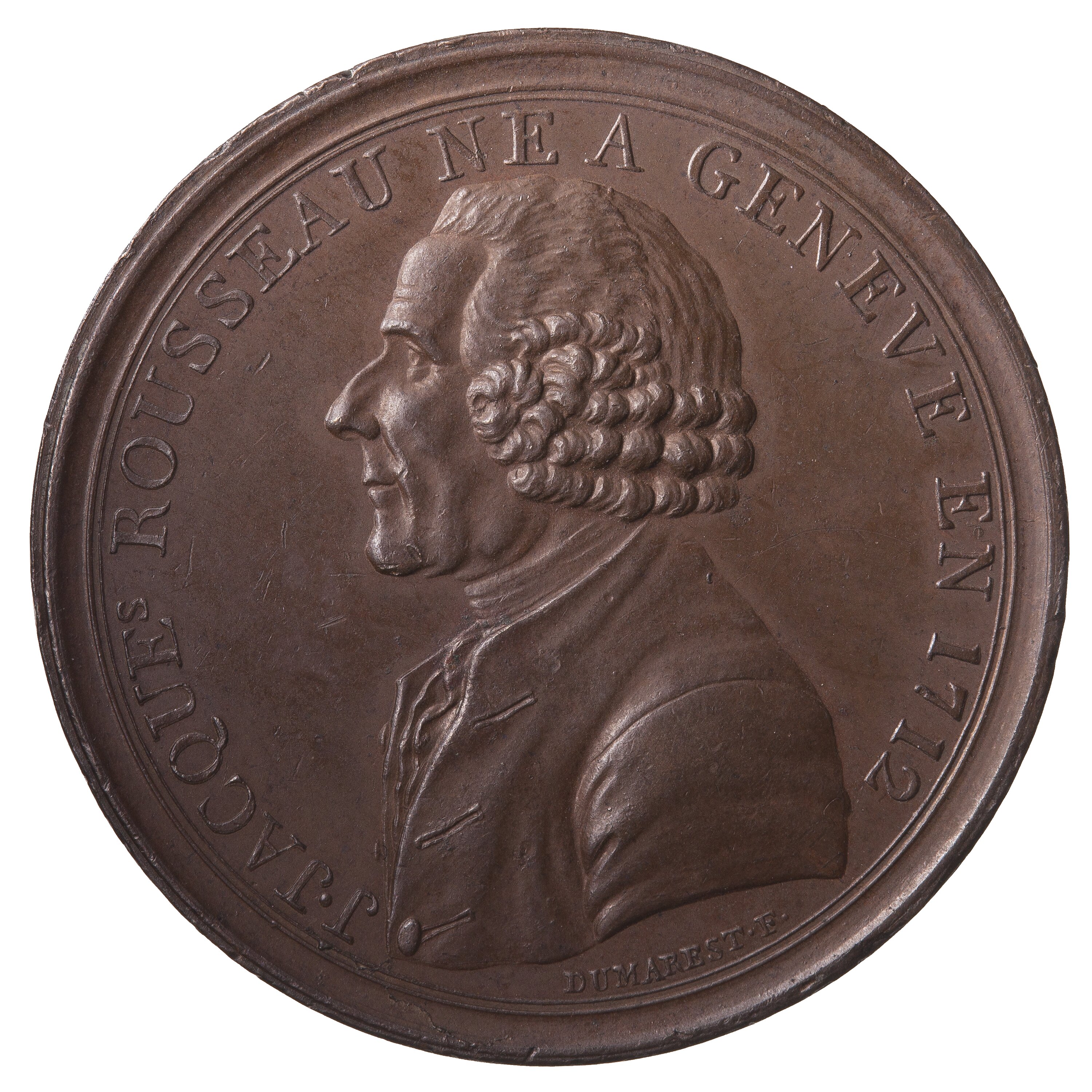 Portrait medal of Jean-Jaques Rousseau (1712-1778) by Dumarest. Minted in Paris, 1795.