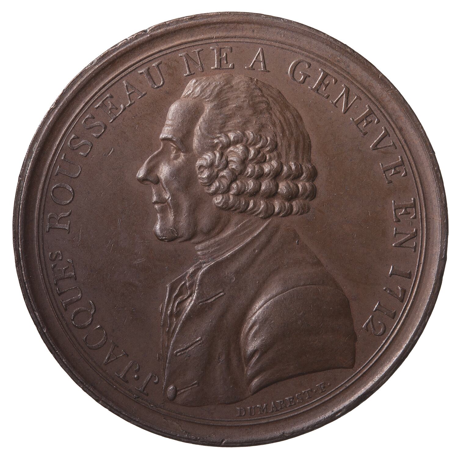 Bust facing left, around, J. JAQUES ROUSSEAUNEA GENEVE EN 1712, below in smaler lettering, DUMAREST.F.