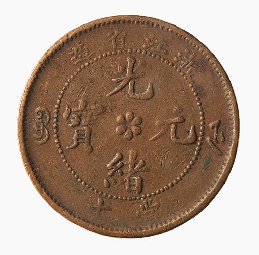 10 Cash, Issued by Khuang-hsu (1875 - 1908), Chekiang Province (Zhejiang), China, nd. (1903-1906)