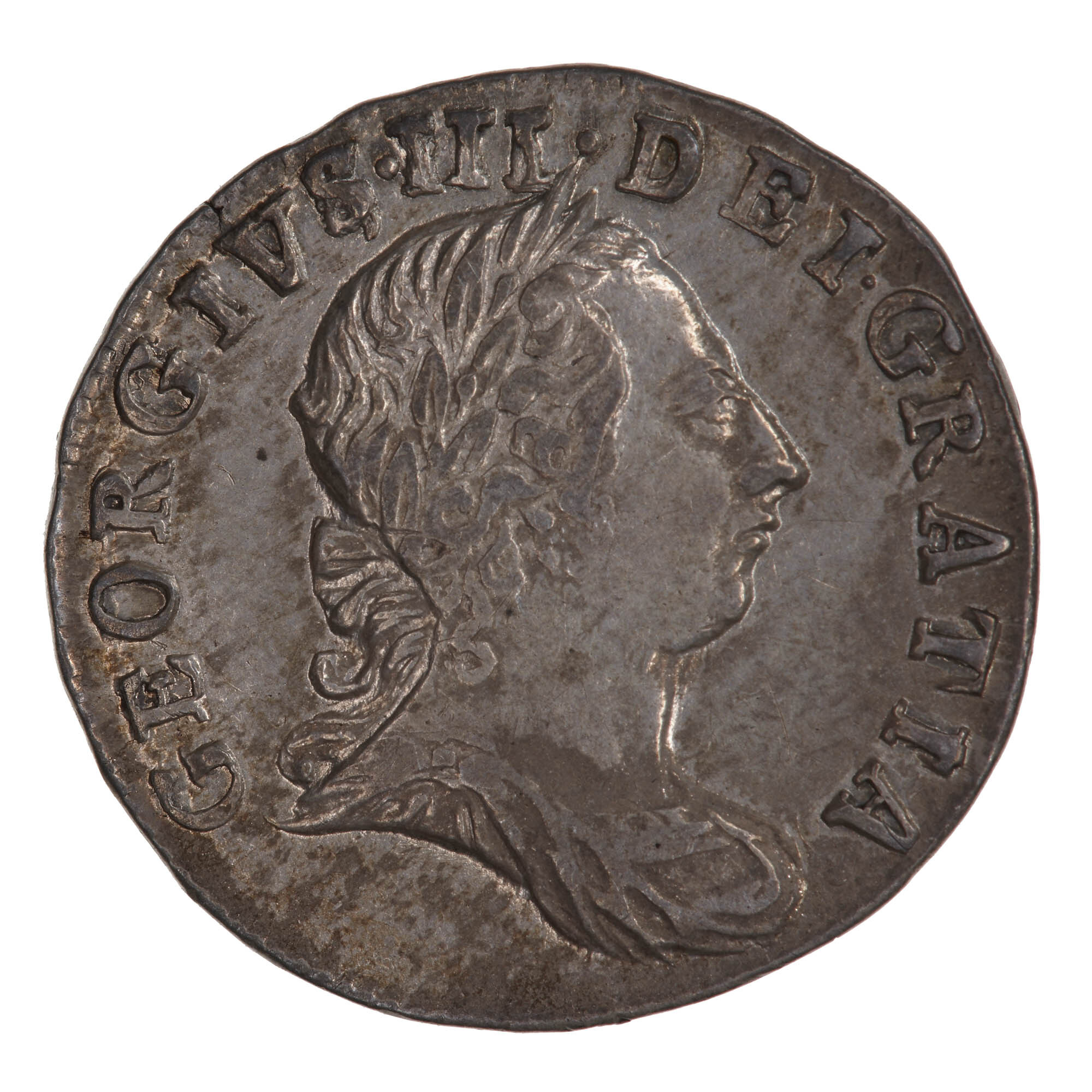 Laureate and draped bust of the King facing right; around, GEORGIVS III DEI GRATIA