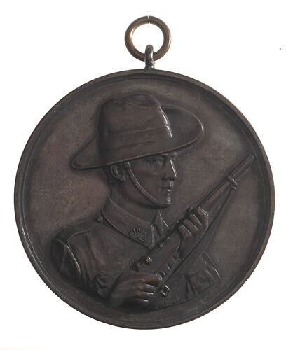Medal issued by the South Australian division of the Australian Comforts Fund. Comforts Funds sent care parcels to Australians serving overseas, including letters, newspapers and periodicals. Early in World War I local women's groups in Australia began working to provide provide tobacco, cakes, puddings, condensed milk, sugar, biscuits' newspapers and other 'luxury' items to supplement the Australian soldier's army rations. These fundraising bodies were amalgamated in 1916 to form a national body which undertook to provide 'comforts' to all Australians abroad, the Australian Comforts Fund. The ACF grew into an enormous fundraising, collecting, sorting and distribution organisation that rivalled the Red Cross. Although men took some executive positions on national and state committees, the bulk of the administrative and manual work fell on a huge 'army' of unpaid women. Some of the work took place on the battlefield, where 12 million mugs of coffee and tea were provided during World War I. The ACF was dissolved at the end of the War, but had proved such a success as a link between home and the battlefield that it was revived in 1940.