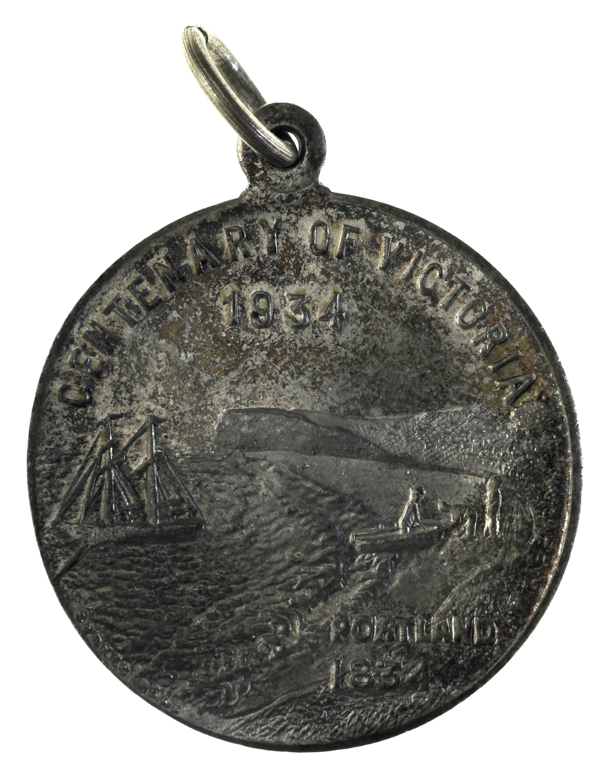 Other Details: Silvered bronze medal issued to commemorate Melbourne's centenary 1934-35. The medal also refers to Portland, the location of Victoria's first settlement. The Henty brothers, entrepreneur farmers and whalers, established the state's first permanent European settlement in Portland in 1834. Melbourne was established the following year by a party of settlers led by John Batman.
