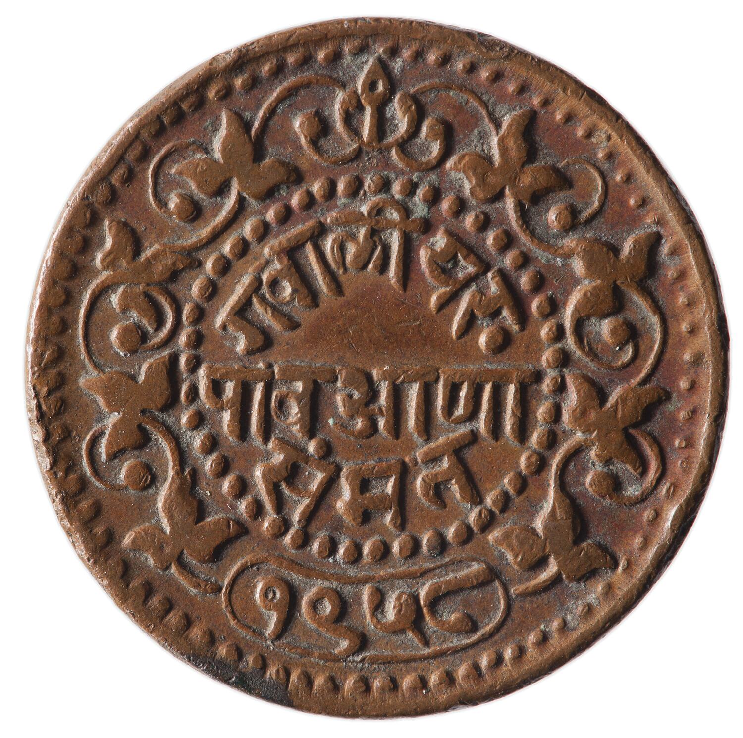 Copper 1/4 Anna coin issued by Madho Rao in the Gwalior Princely State