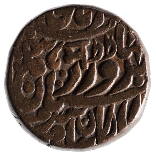 Within a border of beads, Persian legend (mostly off flan: [date] sana pao anna sardar singh maharaja sri Zarb Jodhpur )
