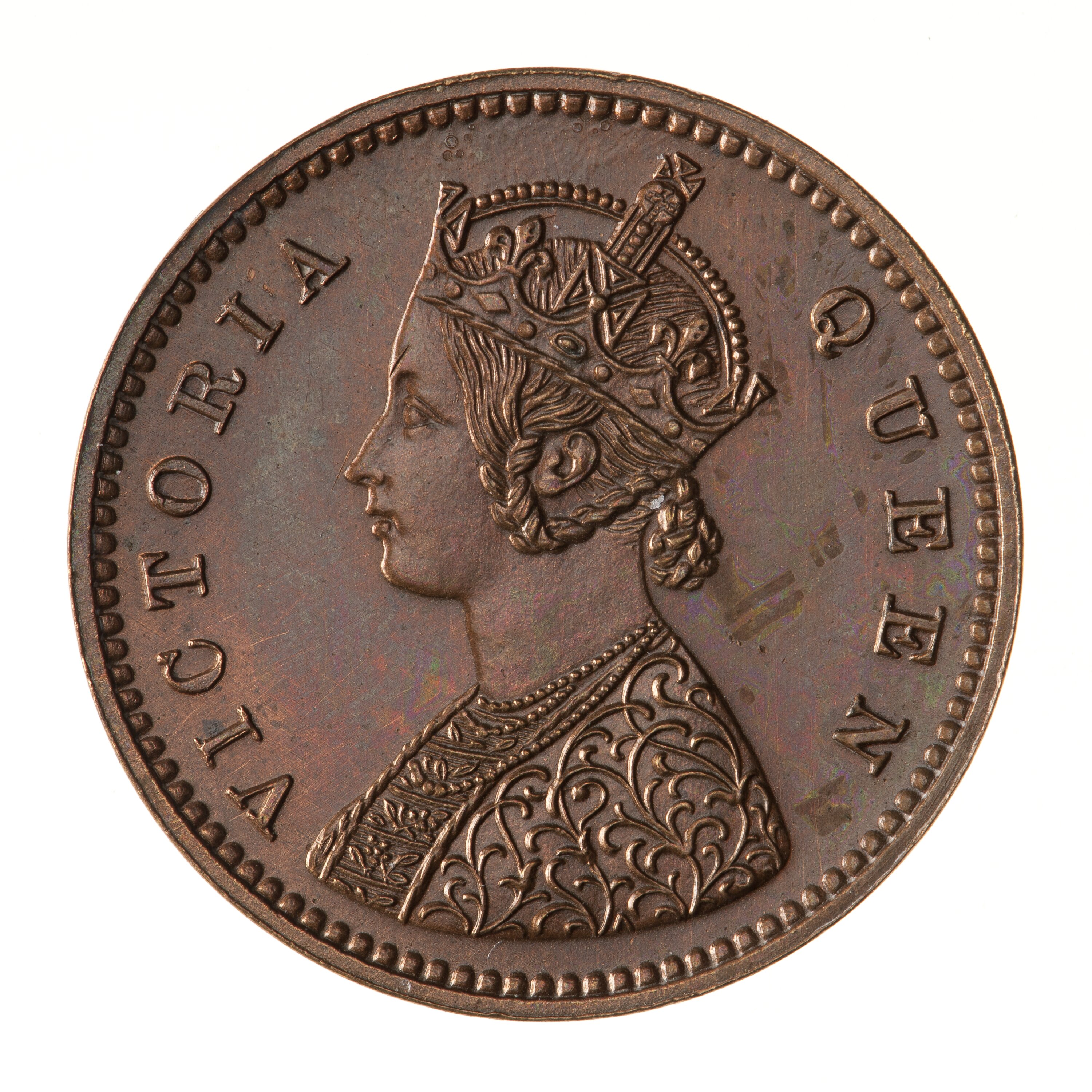Within entwined scrollwork with oak leaves and circle of beads, 1/12 / ANNA / INDIA / 1862