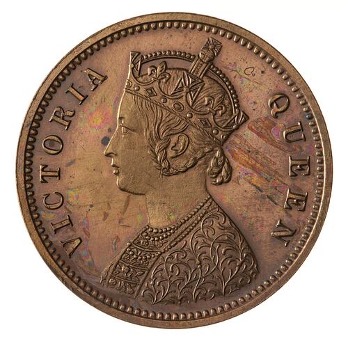 Crowned and robed bust of the queen facing left; around VICTORIA QUEEN (V at centre of bust truncation)