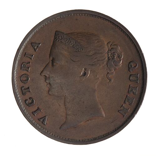 1 Cent, Issued by Straits Settlements, Malaysia, Penang, Malacca, Singapore, 1845