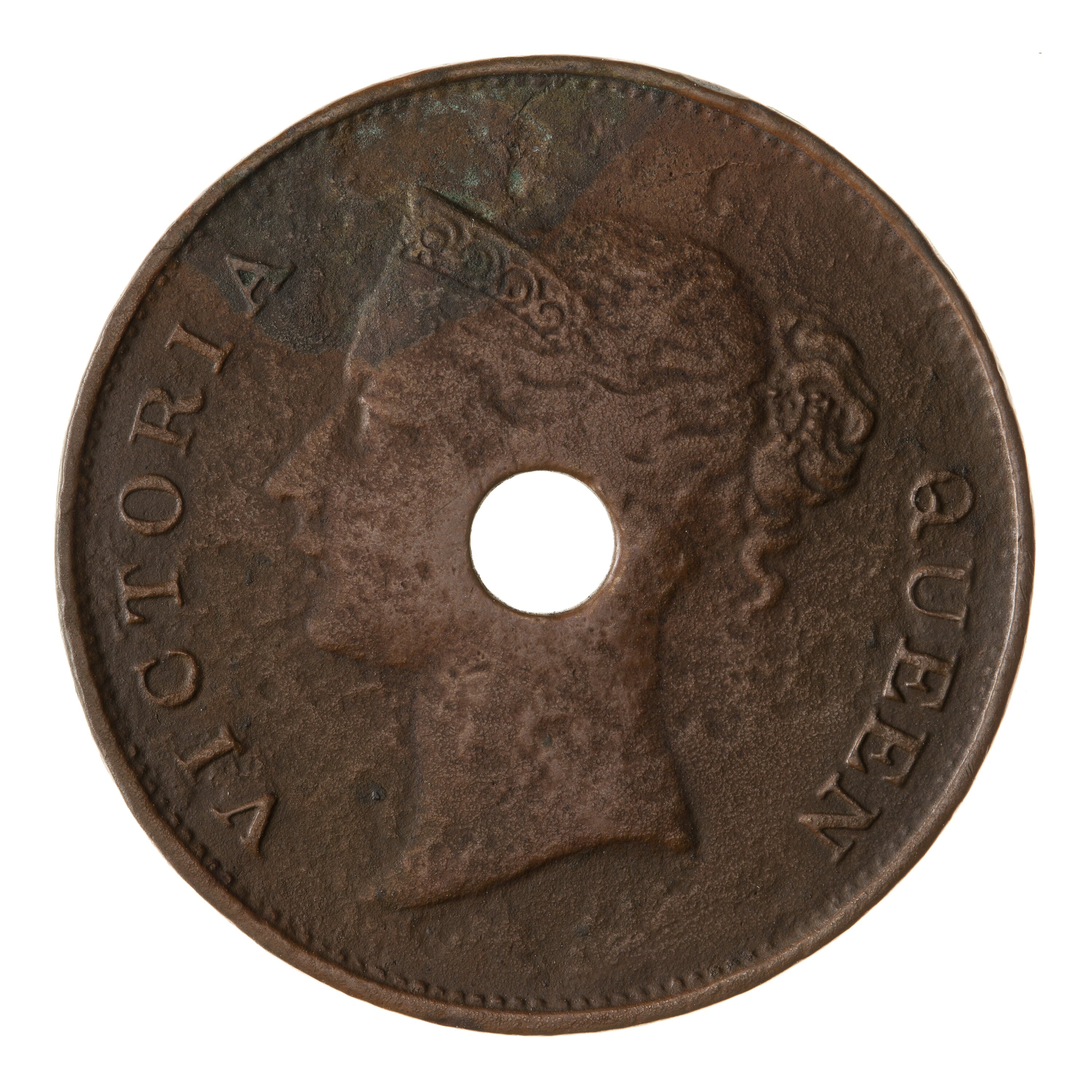 In the 1830s and 1840s, crews shipwrecked on the Andaman Islands were often attacked and killed by the natives. In 1855, the British government proposed a settlement on the islands which would include a convict establishment. The Indian Rebellion in 1857 delayed it's construction but provided many new prisoners. Construction began in November 1857 at the renovated Port Blair. Rupees were issued in 1861 and 1866, they are termed tokens as the metal value of the coin was not equal to its face value. No prisoners were sent there after 1921, it was occupied by the Japanese during World War II and it was closed after it. The tokens were withdrawn from circulation in 1870.