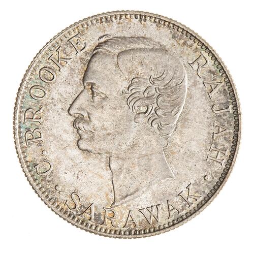 Head of Charles Brooke facing left; around, C. BROOKE RAJAH . SARAWAK .