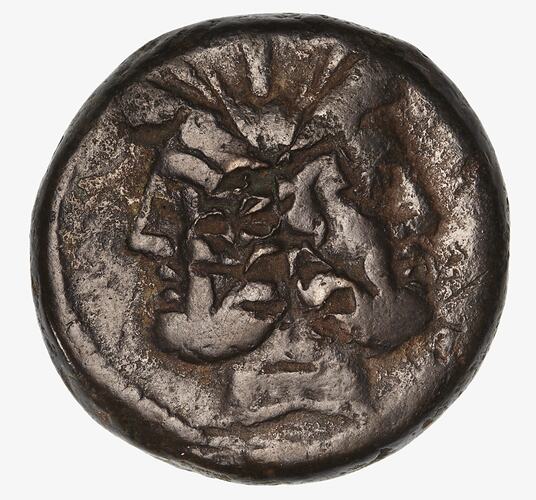 In 211 BC the Romans introduced a new coinage system based on the copper denomination an As (this coin). Copper coins were struck as fractions of an As , silver coins as multiples (the quinarius - 5 As, the denarius - 10 As) and in gold 20, 40 and 60 As.