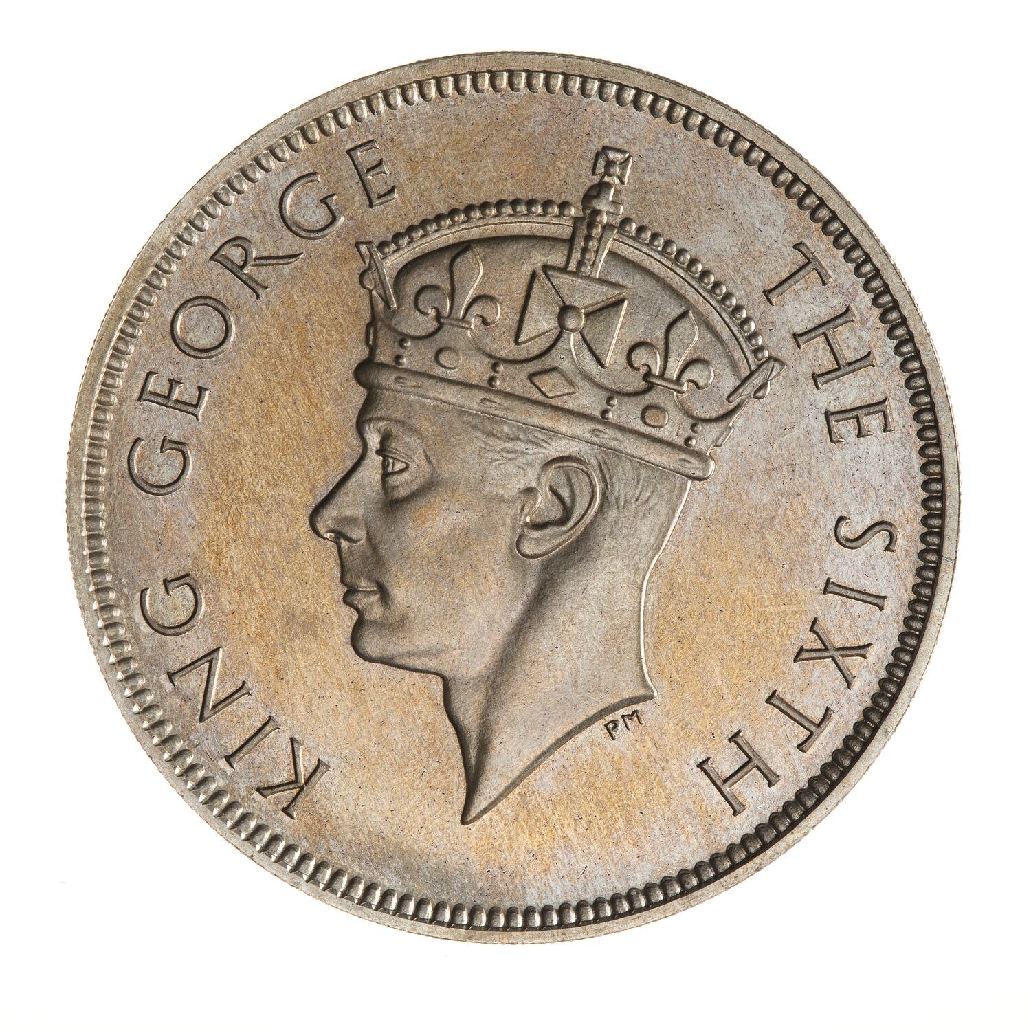 Crowned head of the King facing left; around, KING GEORGE THE SIXTH; the artist's initials, HP, below neck truncation