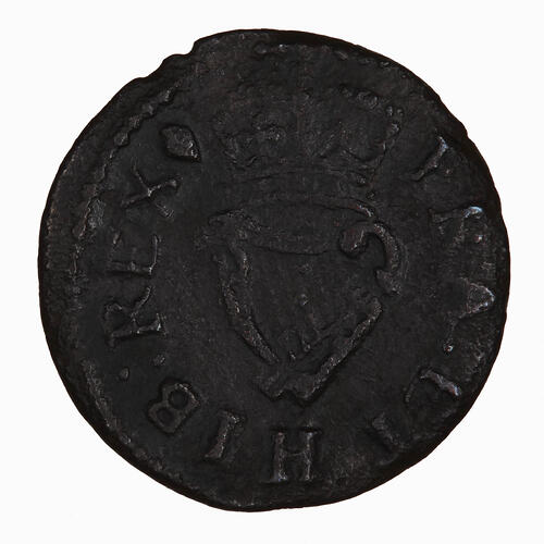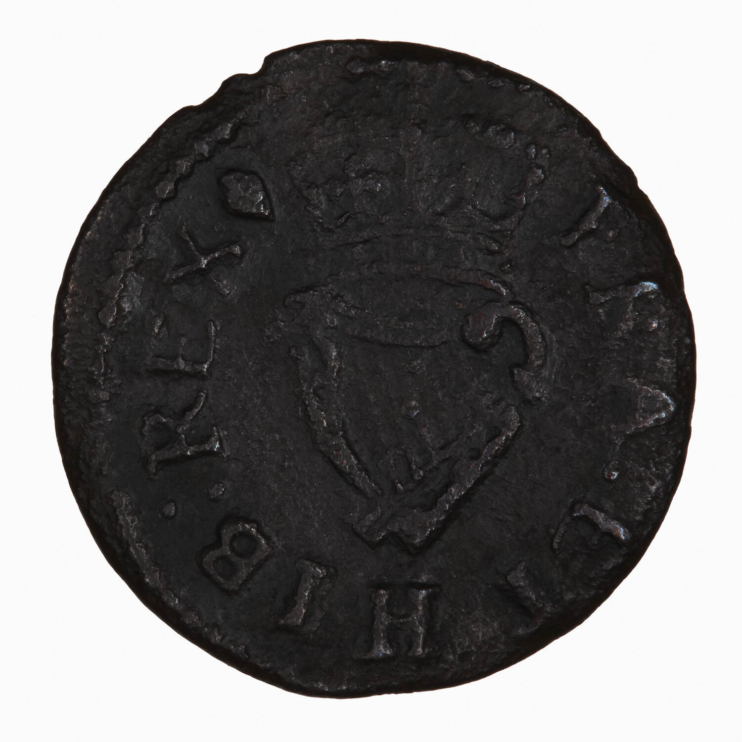 Struck and issued under patent granted by James I to Ludovic, Duke of Lennox and James, Marquis of Hamilton either in 1614 (North) or 1622 (Grueber). Being an authorised farthing issue they are termed Royal tokens. The James I Royal tokens were the first copper currency in the English series. A farthing is a 1/4 penny coin. A great difference between the value of the metal and the currency value of these tokens led to extensive forgery and to their widespread unpopularity.