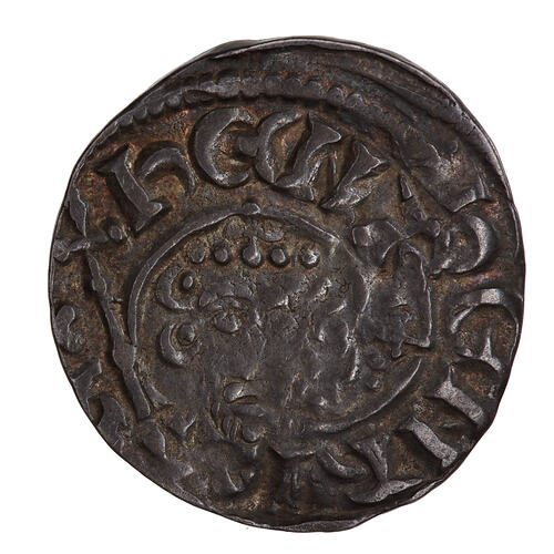 A crowned bust of the King facing within a line circle, holding a sceptre outside the circle; around; HENRICVS REX - double struck