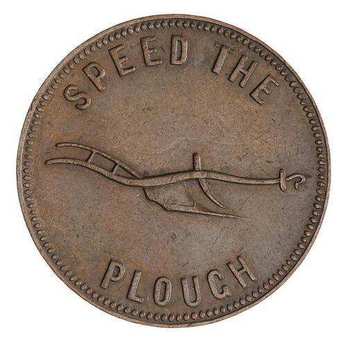 The company had two issues of tokens the first in 1840 when the plough had a clevis at the right side and the second in 1857 with a hook