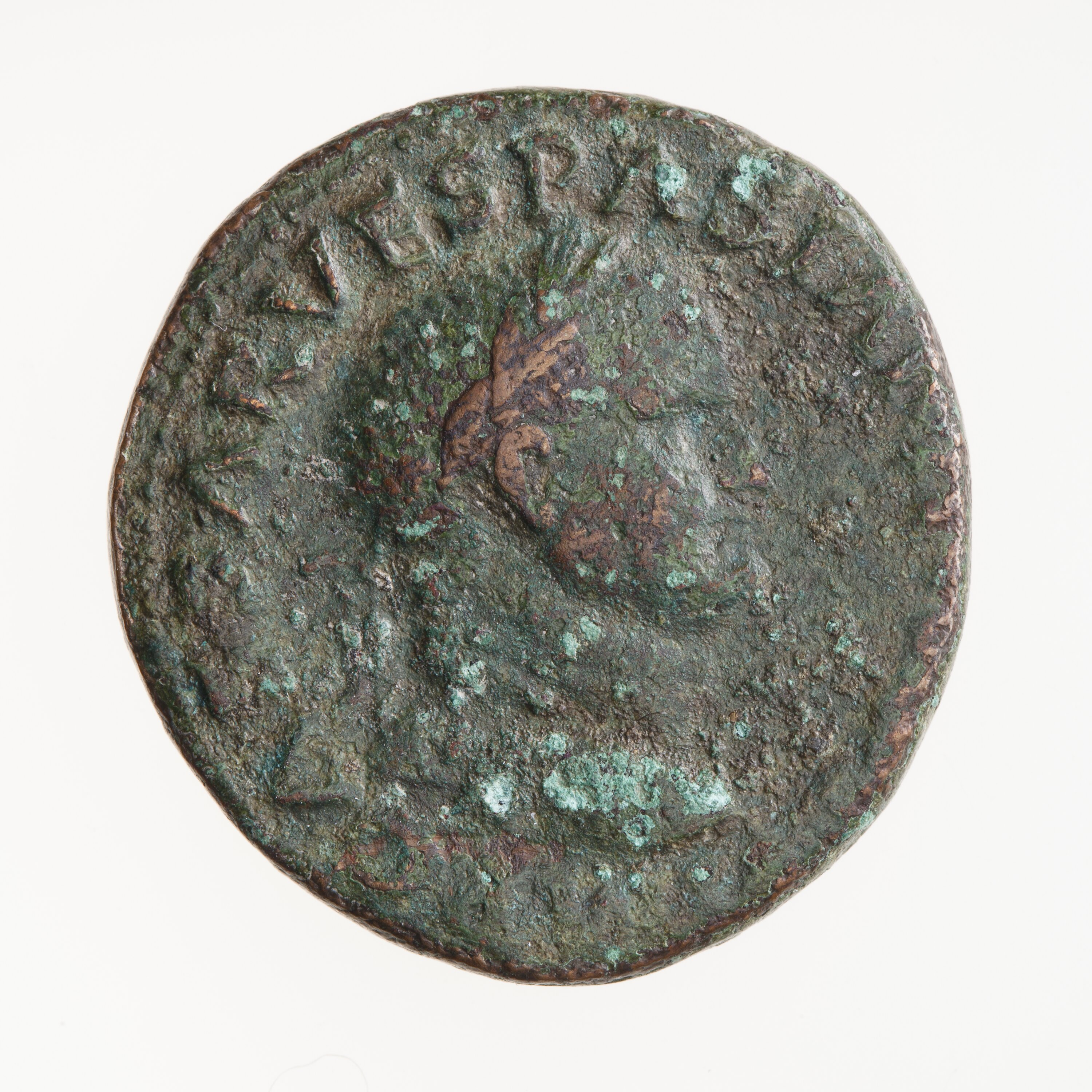 Laureate head of Vespasian facing right; around, IMP CAES VESPASIAN AV[G COS III]